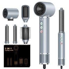 브러시리스 모터와 음이온 기능으로 빠른 건조와 스타일링이 가능하며, 저소음과 저온기류로 모발 손상을 최소화하고 다양한 헤어 관리 기능을 제공하는 5 in 1 다용도 드라이기.