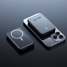 20000mAh 대용량과 PD22.5W 슈퍼 급속충전을 지원하며 15W 무선충전과 맥세이프 호환, 항공 표준에 부합하는 회색 보조배터리.