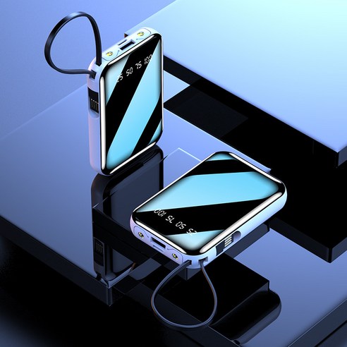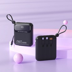 20000mAh 용량으로 장시간 사용 가능하며 4개의 내장 충전선으로 다양한 기기 동시 충전이 가능한 고속 보조배터리.