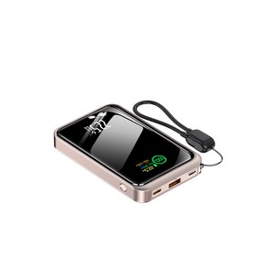 10000mAh 용량과 PD 22.5W 초고속충전을 지원하며 케이블 일체형과 미러 디자인으로 편리함과 스타일을 갖춘 Lily Cream 색상 보조배터리.