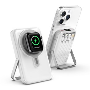 THOUSTA 맥세이프 대용량 보조배터리 고속충전 PD22.5W 거치대 케이블 일체형 무선 배터리 10000mAh, 1개, 화이트