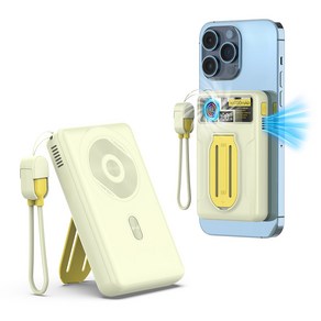 VergHatia 맥세이프 고속충전 보조배터리 10000mAh PD 22.5W 거치대 일체형 냉각 무선 배터리 C타입 아이폰 호환가능, 베이지색/Beige, PB387-10000mah