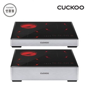 - 쿠쿠 하이브리드 인덕션 레인지 3구 CIHR‑D3415MFB 인덕션 2구와 하이라이트 1구 구성이 되어 다양한 조리 용기를 사용할 수 있다.
