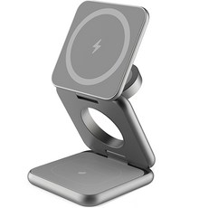 레드빈 더베러 Qi2 3in1 맥세이프 애플워치 5W 무선충전기 CP‑P1‑Qi2, 스페이스그레이, 1개는 아이폰, 애플워치, 에어팟 등 애플 기기를 하나의 기기에서 동시에 무선 충전할 수 있고 Qi2 맥세이프 공식 인증으로 안정적인 자석 부착 충전이 가능하며 접이식 구조로 평상시에는 거치대로 쓰고 접어서 보관할 수 있고 최대 25W 출력 범위 내에서 다양한 기기를 효율적으로 충전할 수 있으며 과열, 과전압, 과전류 등 보호 기능으로 안전한 충전 환경을 제공한다.