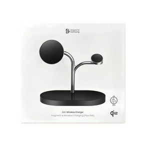 삼성 정품 3in1 마그넷 고속 맥세이프 무선충전기는 스마트폰, 스마트워치, 이어버즈 등을 동시에 무선으로 충전할 수 있는 3‑in‑1 충전 스테이션으로 강력한 마그넷으로 기기를 안정적으로 부착해 고속 충전이 가능하며 각 기기별 전용 코일로 효율적으로 에너지를 분배해 충전 성능을 높이고 USB‑C 입력을 통해 범용 케이블로 편리하게 전원 연결이 가능하며 블랙 컬러와 심플한 디자인으로 책상 위나 침대 옆 공간에 잘 어울리는 제품입니다.