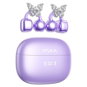 PAXA 오픈 이어 클립 이어버드 무선 블루투스 이어폰 LED 전원 디스플레이 ENC 노이즈 캔슬링 이어폰 스포츠용 Clipbuds7, 퍼플 이어클립+나비 귀걸이