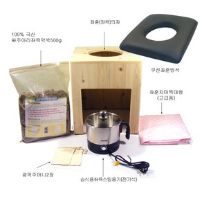 모사월드 (당일출고) (무료배송) 쑥좌욕기+안면스팀 좌훈세트 (인조가죽 좌훈쿠션방석 포함), 1세트