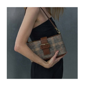 하운드투스 체크 패턴과 가죽 배색으로 클래식하면서 세련된 느낌을 주며, 컴팩트한 크기와 실용적인 내부 수납으로 데일리 스타일링에 적합한 여성용 크로스백입니다.