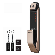 지문인식과 번호키를 함께 써 출입할 수 있고 푸시풀 손잡이로 문 여닫기가 편리하다. 고리형 카드 2개와 부착형 카드 2장이 포함돼 여러 방식으로 인증할 수 있고 직접 설치해 바로 쓸 수 있다.