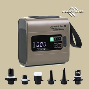 마운트리버 에어원 프로 22는 C타입 충전으로 무선 사용이 가능하며, 에어텐트, 매트, 보트 등 다양한 제품에 신속하게 공기를 주입하고 배출할 수 있는 전동 펌프입니다.