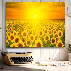 노을과 해바라기 그림이 담긴 캔버스액자로, 풍수 컨셉으로 집안에 행운과 금전운을 불러오며 주문 즉시 국내 제작되어 신속하게 공간을 장식할 수 있는 제품입니다.