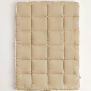 에어로웜 충전재를 사용해 가볍고 포근한 사용감을 제공하며 유아 침대나 바닥 위에 깔아 따뜻하고 편안한 수면 환경을 만들어 주는 크림 골드 색상의 유아용 토퍼였다.