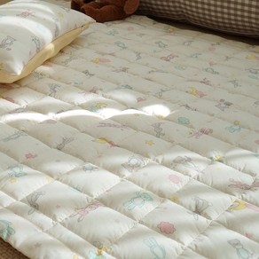 부드러운 극세사 밍크 원단으로 제작되어 포근한 촉감을 제공하며 어린이 침대나 기숙사 침대 위에 깔아 따뜻하게 사용할 수 있는 토끼 디자인의 담요형 침대 패드였다.