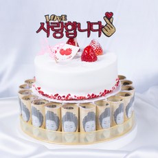 지폐 40장을 활용해 3단 구조로 구성된 돈케이크 제작 세트로 사랑합니다 문구가 포함되어 있어 기념일이나 특별한 날에 감동적인 서프라이즈 선물을 만들 수 있는 DIY 상품이다