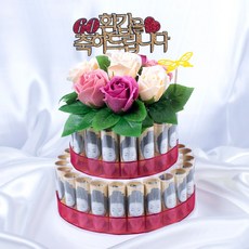 돈케이크 만들기 케이크용 지폐20장용, 사랑합니다(기본), 04.비누장미A세트+리본A세트+원형케이스
