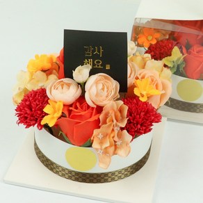 비누꽃 오렌지믹스 디자인으로 화사한 분위기를 연출하며 반전 머니케이크 구조로 감사와 그리움의 메시지를 함께 전달할 수 있는 감성적인 선물용 상품이다