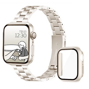 아이비온 애플워치 슬림 메탈 스트랩 40 44 + 풀커버 케이스 세트, 스타라이트