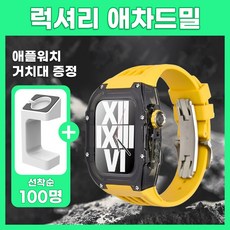 럭셔리 애차드밀 일체형 스트랩은 애플워치의 44/45mm 모델에 적합한 남성용 명품 밴드입니다. 블랙과 옐로우의 세련된 컬러 조합으로 스타일리시하며, 줄질 케이스가 포함되어 기능성 또한 우수합니다.